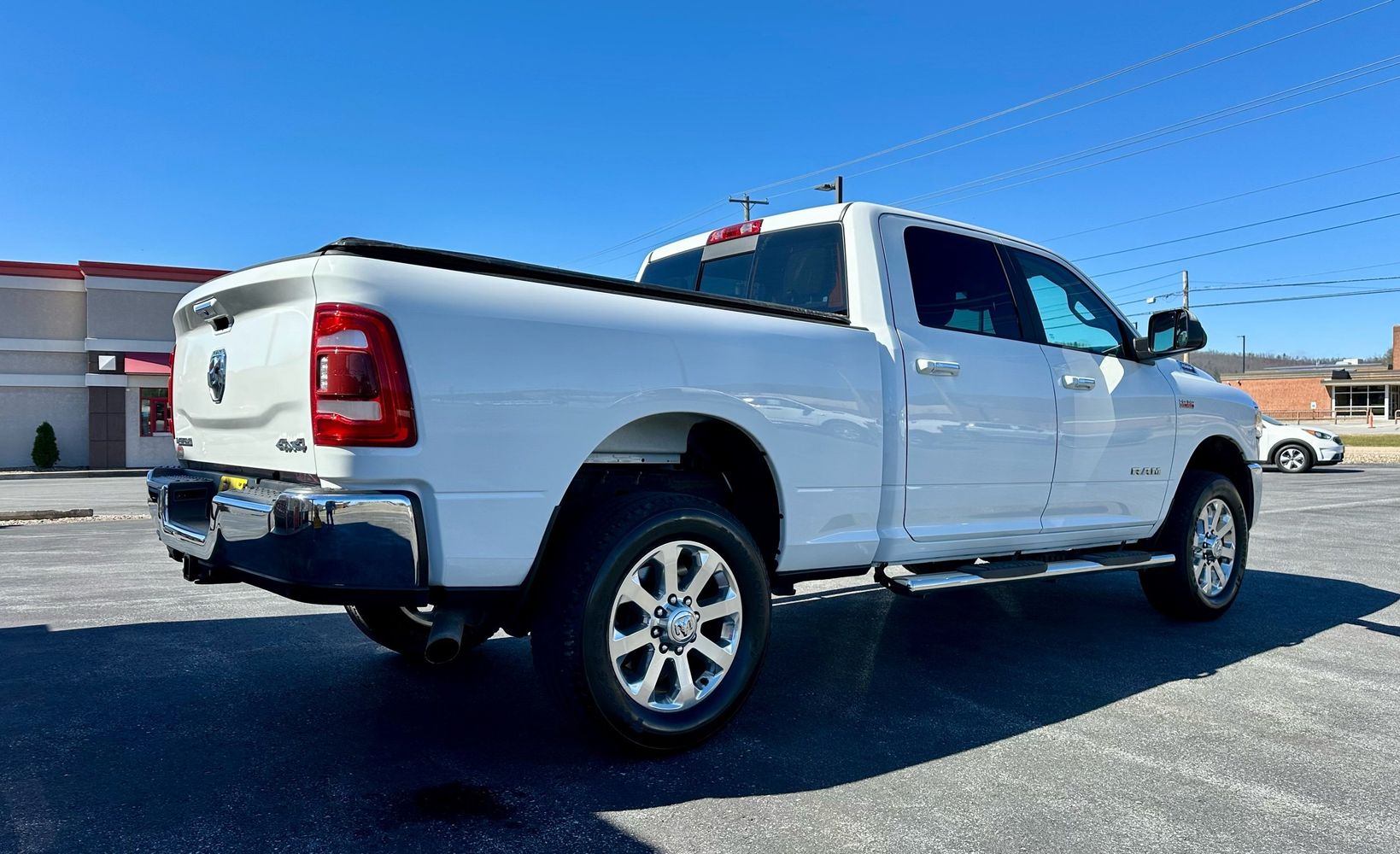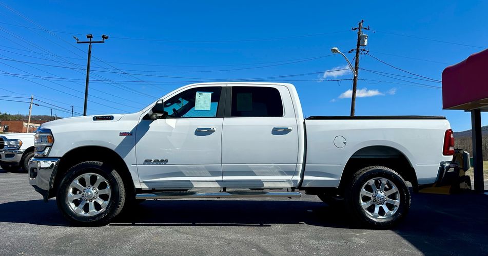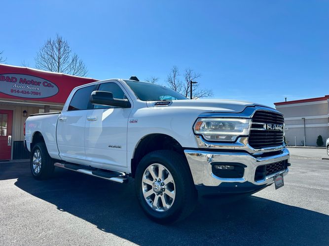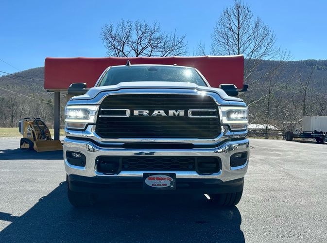 2019 Ram 2500 Big Horn. 4x4 crew cab short bed, 6.4L hemi v8. Level 2 equipment group with 20" wheels, dual climate control, Apple Carplay and Android Auto, 7" touch screen radio, heated front seats, heated steering wheel, park sensors, power pedals, remote start, power sliding rear windows, led headlights and tail lights, bed step, 3.73 axle ratio, and comes with our powertrain warranty.