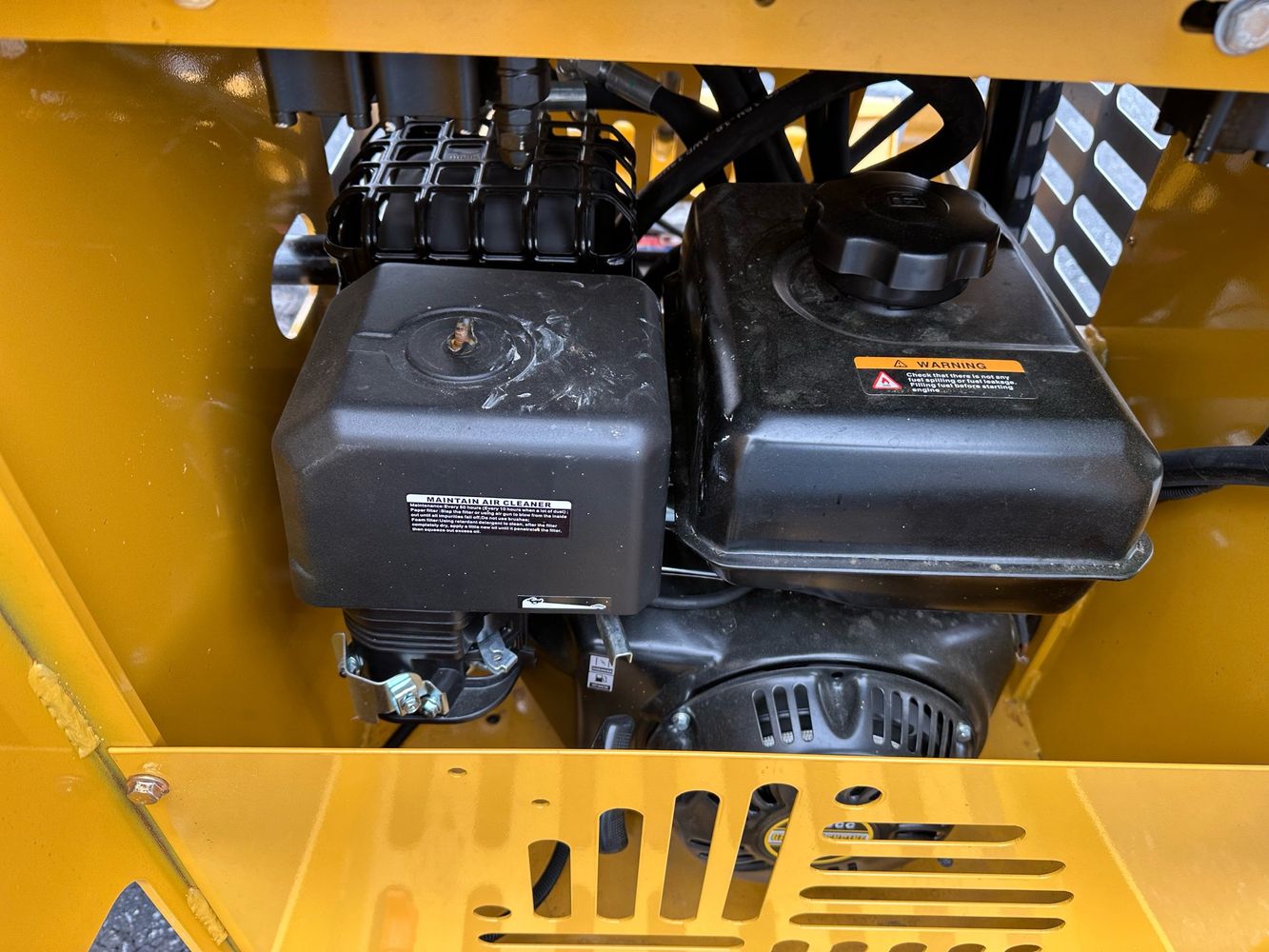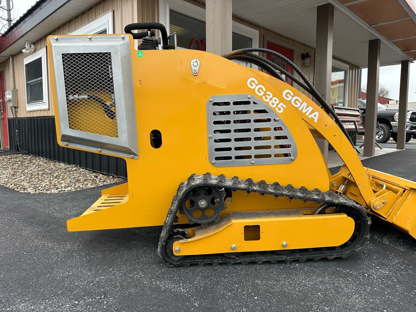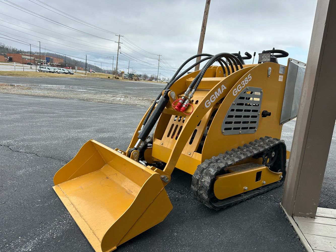 Gasoline powered compact mini skid steer. Designed for light-duty tasks like landscaping and farming, 15HP engine, 660 lb lift capacity, and a Dingo-style quick attach system and aux hydraulic remotes.